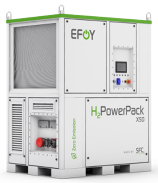 The EFOY H₂PowerPack X50 is a hydrogen energy solution for mobile and stationary applications with an output of 50 kW and can be clustered up to 200 kW.