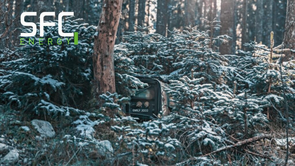 The SFC EMILY Fuel Cell takes care of the on-board power supply of a stationary vehicle when the engine is not running. It is directly connected to the on-board battery for this purpose. Electrical peak loads are compensated directly from the battery, while the SFC EMILY continuously monitors this and, if necessary, recharges independently.