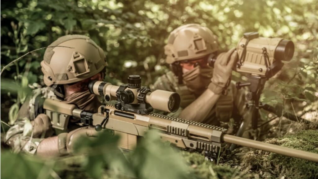 Reconnaissance of terrain structures, monitoring objects and persons, observing, reconnoitring, identifying and allocating targets in dismounted condition at long distances behind enemy lines.